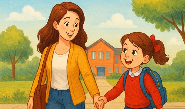Megy a kislány iskolába,